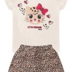 Conjunto Moletom Peluciado Infantil Feminino Onça – Preto