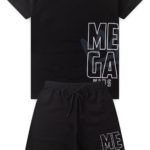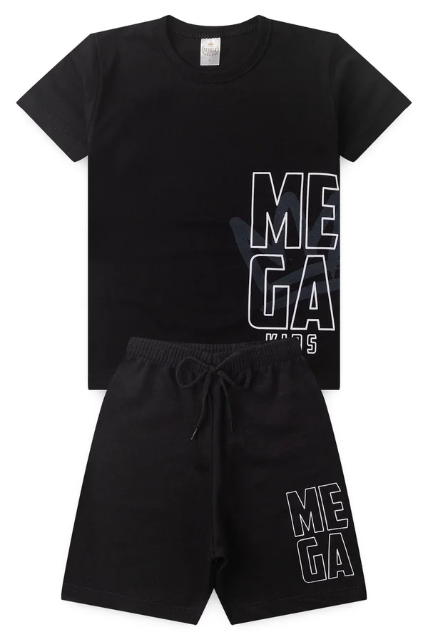 Bermuda em Moletinho na cor preta, possui estampa frontal, elástico no cós e aplique de cordão.